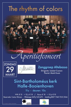 Laat je meevoeren door The Rhythm of Colors, een sprankelend aperitiefconcert waarin elke melodie een eigen tint krijgt. Ons koor brengt een kleurrijke mix van liederen die het palet van emoties en klanken tot leven wekt. Na het concert klinken we samen verder met een gezellig aperitief. Hopelijk tot dan!